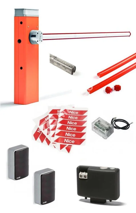 NICE L9BAR7BDKIT1 — комплект профессионального шлагбаума для проездов до 7 м. Решение на бесщеточном приводе для интенсивной эксплуатации: плавная и быстрая работа, высокая надежность, продуманные функции безопасности и расширяемость за счет фирменной экосистемы автоматики.