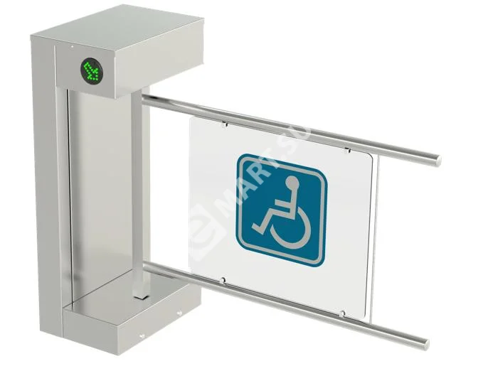 CAME SALOON 705 - Турникет-калитка МГН моторизованная. Корпус - нержавеющая сталь AISI 304. Оснащена платой управления и светодиодными указателями прохода. Сервопозиционный электропривод створки с определением препятствий и автоматической разблокировкой при отключении электроэнергии. Створка 900 мм с информационной вставкой. Время открытия 2.2 сек. Встроенный блок питания.