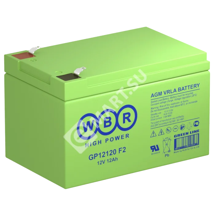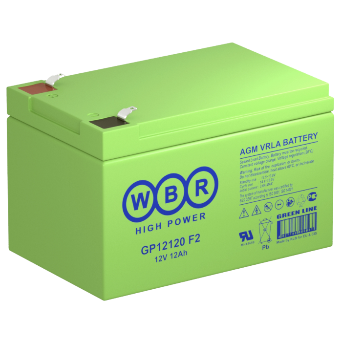 Аккумулятор WBR GP12120 F2 - герметизированная, выполненная по технологии AGM, аккумуляторная батарея общего применения со сроком службы до 8 лет в буферном режиме или 260 циклов заряда-разряда в циклическом режиме при 100% разряде. Эта высокоэффективная, перезаряжаемая батарея, не требующая обслуживания в течение всего срока службы.