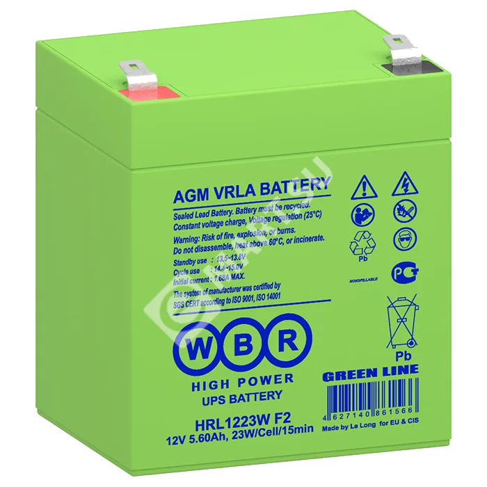 WBR серии HRL1223W F2 - герметизированные, необслуживаемые, VRLA аккумуляторы, изготовленные по технологии AGM, со сроком службы до 12 лет применяются для эксплуатации на коротких режимах разряда в системах бесперебойного питания ЦОД и другом технологическом оборудовании. Допускают до 300 циклов глубокого разряда.