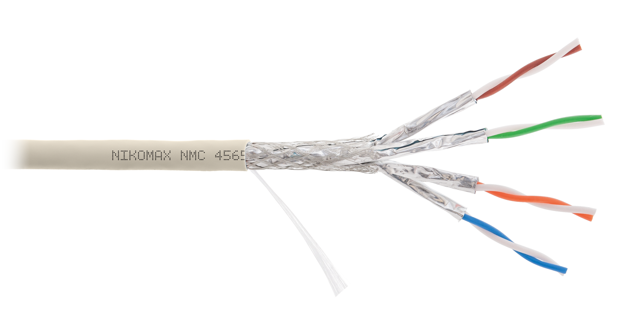 Кабель NIKOMAX S/FTP 4 пары, Кат.7 (Класс F), тест по ISO/IEC, 600МГц, одножильный, BC (чистая медь), 23AWG (0,56мм), полимерный материал нг(А)-LSLTx, внутренний, светло-серый, 500м - гарантия: 5 лет /15 лет системная