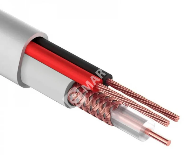 Кабель коаксиальный КВК позволяет одновременно передавать как видеосигнал, так и питание на оборудование. Коаксиал и кабель питания расположены внутри одной внешней оболочки, что обеспечивает удобство прокладки и подключения. Коаксиальный кабель служит для передачи высокочастотных сигналов и активно применяется для систем кабельного телевидения, для систем связи, авиационной, космической техники, компьютерных сетей, бытовой техники и тд. Кабель питания: 2x0.5мм2 многожильный, медный Количество метров в бухте: 200м Цвет: белый Внешняя оболочка кабеля, d: ПВХ, 4 мм Центральный проводник, d: медь, 0,36мм Оплетка: - Материал: CCA (омедненный алюминий) - Диаметр жил x кол-во жил (нитей оплетки): 0,12 x 80 шт Процент оплетки: 92% Диэлектрик, d: ПЭ, 1,97 мм Волновое сопротивление (Ом): 75 Диапазон температур, °С: Монтаж: от 0 до +60 Эксплуатация/хранение: от -2