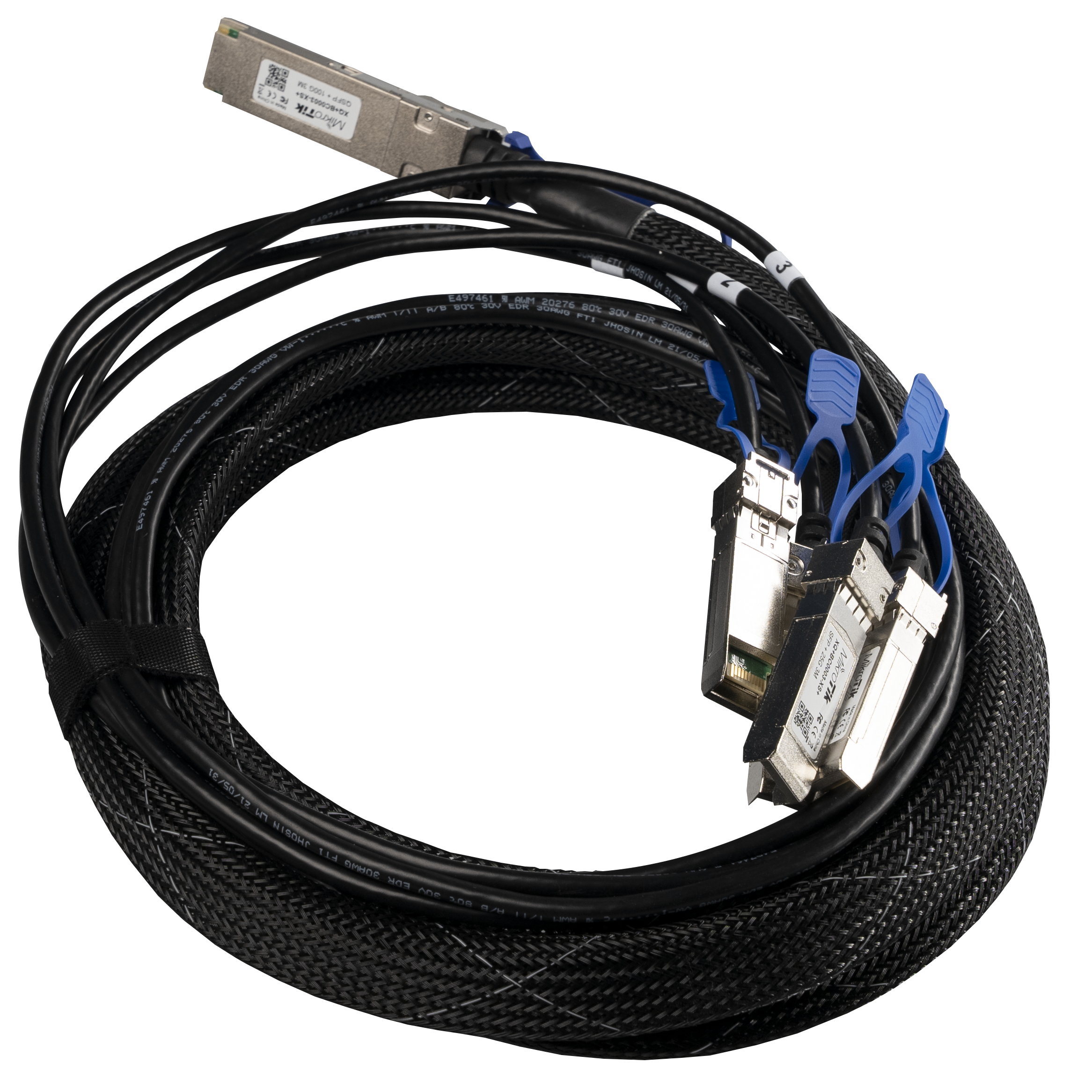 XQ+BC0003-XS+ - это соединительный кабель QSFP28 - 4xSFP28. Это дополнение к линейке продуктов MikroTik 100 Gigabit позволяет подключать несколько 25 Гигабитных устройства к  QSFP28 Вашего CRS504 или CCR2216. Подключение многочисленных устройств становится настолько простым, насколько это возможно. Длина кабеля составляет 3 метра.