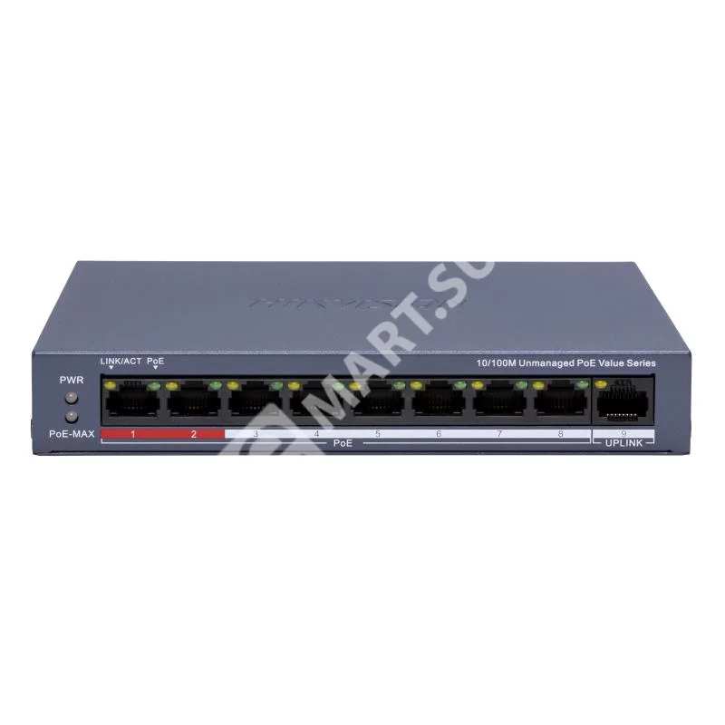 Компактный PoE-коммутатор Hikvision DS-3E0109P-E/M(C) с 8 портами PoE и бюджетом 60 Вт